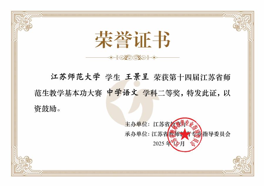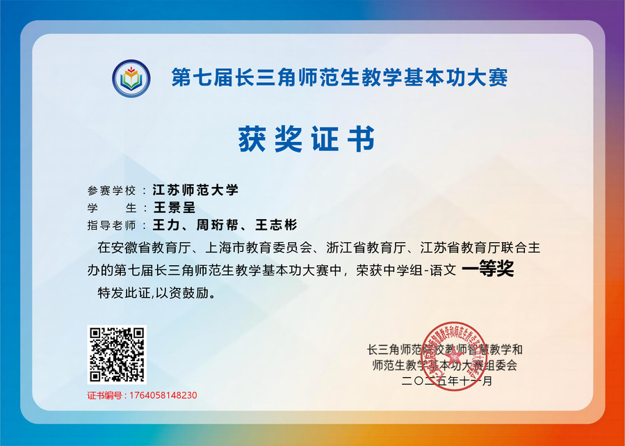 近日,第十四届江苏省师范生教学基本功大赛、第七届长三角师范生教学基本功大赛和第十一届“田家炳杯”全国师范院校师范生教学技能竞赛结果陆续公布,文学院和敬文书院汉语言文学(师范)专业学子王景呈、邹惠荞、尹航、嵇可欣、朱静娴、孙义涵等沉着发挥,奋勇拼搏,共取得一等奖1项、二等奖2项、三等奖4项。文学院高度重视师范生基本功赛事的备战工作,王力、孟宪浦、霍生玉、步进、周珩帮、王志彬、李敏、孙文起、郭春喜等多位校内外名师对参赛学生进行了系统强化培训,形成了高效顺畅的工作机制和全院动员的参赛氛围。下一步,文学院将深化与敬文书院在人才培养方面的协同合作,以廖序东班建设为抓手,进一步提升师范生培养质效,培养更多教育家型的师范生人才。